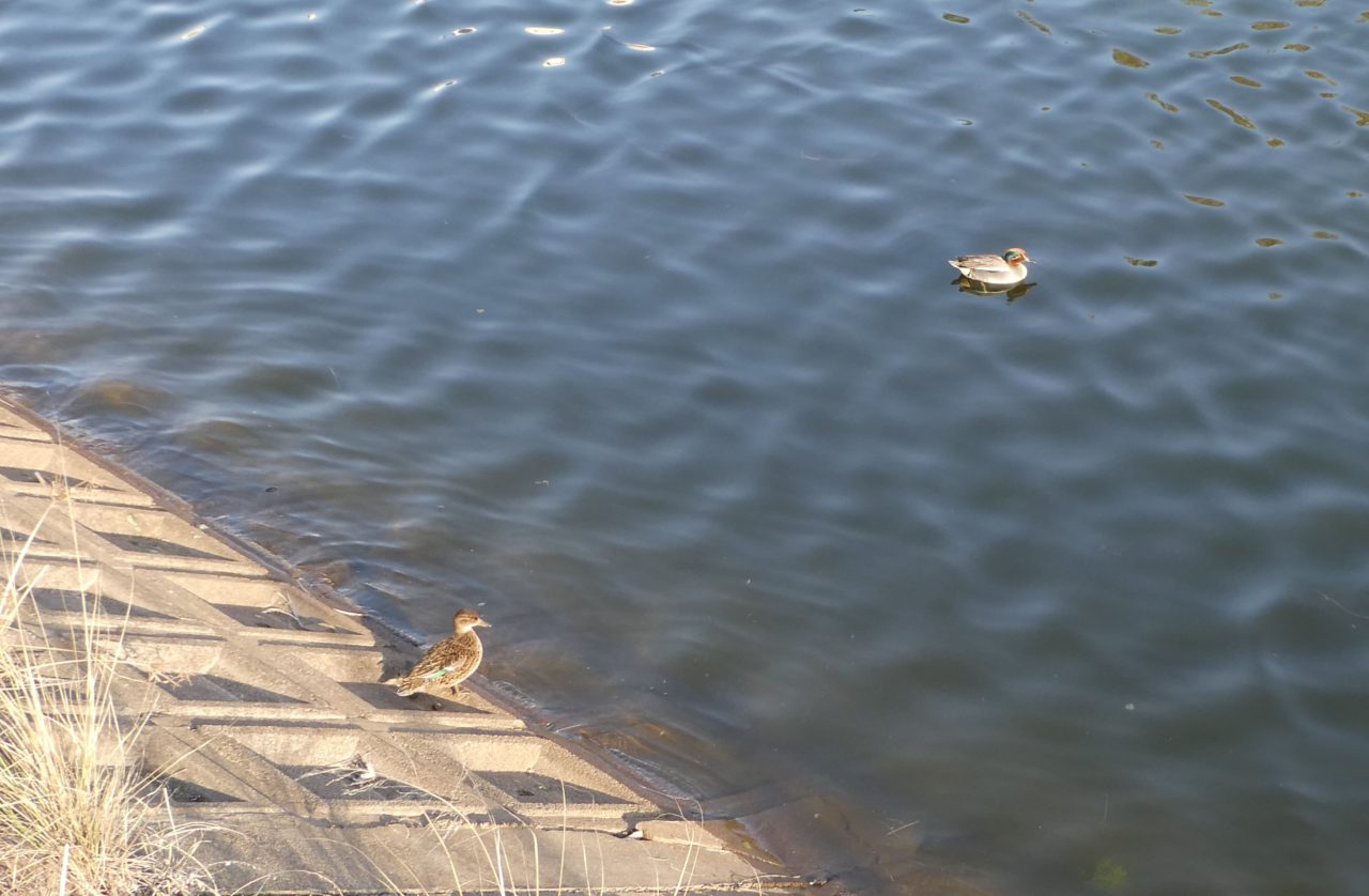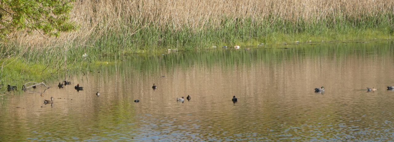 他のカモは奥の方に集まっていたけども距離がありすぎて、肉眼だと点々になる