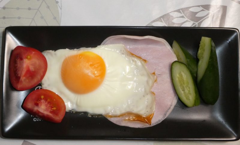 ハムとキュウリとトマトを添えて完成。